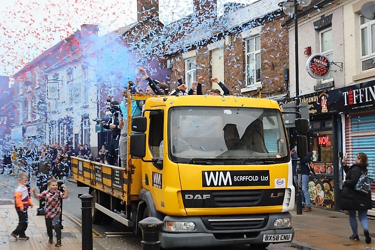 «Доули Таун», выигравший 11-й дивизион, по медийной части решил не отстать от соседнего через границу «Рексема» и арендовал машину, перевозящую строительные леса. Чем привел в восторг жителей городка!
