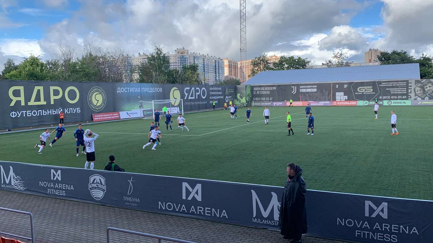 Добавляет колорита стадиону расположенный прямо в нём ресторан «Трибуна». Он занимает верхний ярус арены, служа этакой VIP-ложей. В заведении всё серьёзно, на входе стоит хостес, и весь перерыв мимо неё туда-сюда двигается толпа болельщиков, желающих согреться кофе на вынос. Замёрзшие под сентябрьским питерским дождичком девушки-телевизионщицы весь второй тайм стоят у окон ресторана и взирают на поле через стекло. Персонал заведения, впрочем, к подобной атмосфере явно привычен. В отличие от «Динамо» и «Ленинградца», у «Звезды» нет активных фанатов. Да, парочка человек в бело-красных шарфах мне попалась, но большей частью на трибунах собираются рядовые любители футбола с Академического микрорайона и родственники игроков – несколько раз я услышал от соседей по трибуне фразы в духе «мой племянник сегодня в запасе, а вообще играет он под таким-то номером». На второй тайм я пересел с центра на самую крайнюю трибуну и внезапно оказался рядом с группой игроков одной из команд-соперников «Звезды» по дивизиону. Они подробно разбирали футболистов на поле, обсуждали перспективы клубов и турнирные расклады. Было интересно.