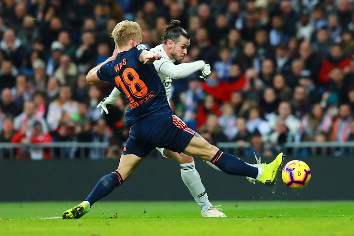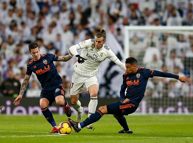 Солари провернул фишку, которую использовала "Валенсия" еще при Унаи Эмери - сдвоенные фланги. Слева играли более мощная в физическом плане связка Регилон (178 см) - Бэйл (185 см). В первом тайме валлиец не гнушался возвращаться назад,чтобы помочь обороне (жаль,что его хватило лишь на 45 минут). Справа же сыграли более мобильные и юркие Карвахаль и Лукас Васкес, которые давали огня и постоянно держали в напряжении Хосе Гайя.