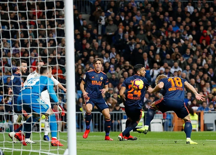 В последнее время "Реал" приучил своих болельщиков к довольно вялой игре в первом тайме и добавлением мощности во втором. Но вчерашний поединок стал зеркальным отражением сложившейся традиции. Мадрид взялся за дело с первых минут матча и навис над воротами Валенсии, в которых геройствовал Нето. Но на 8-й минуте даже бразильский голкипер не смог спасти команду от гола: Дани Карвахаль выцарапал мяч в штрафной у Габриэла Паулисты и навесил, где нашел светлую голову Даниэла Васса. Датчанин пытался разрядить ситуацию, но попал в свои ворота и записал себе в пассив автогол.
