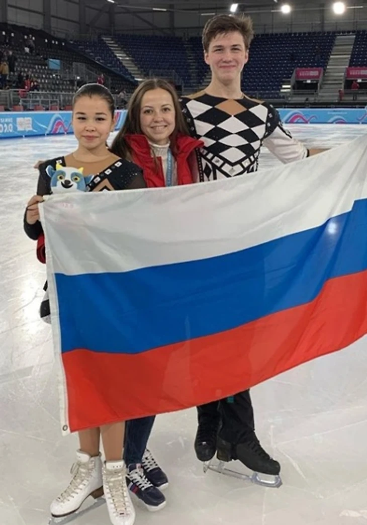 Арина Ушакова с Дианой Мухаметзяновой и Ильей Мироновых на Юношеских Олимпийских играх 2020