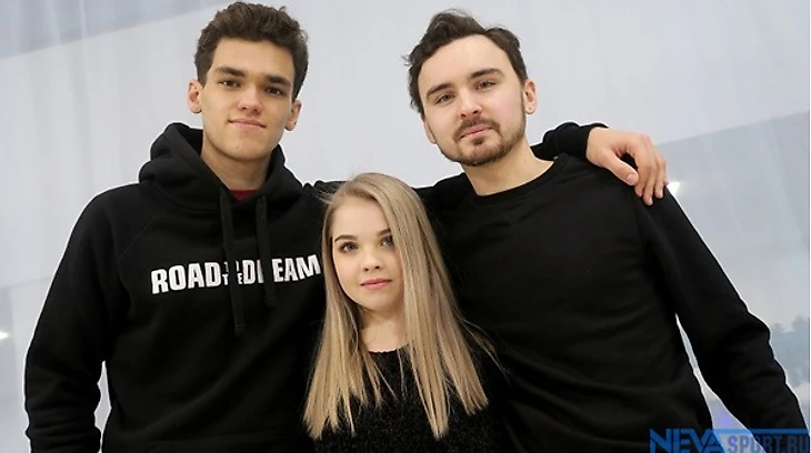 Артур Минчук с Александрой Бойковой и Дмитрием Козловским в Новогорске, 2016 год