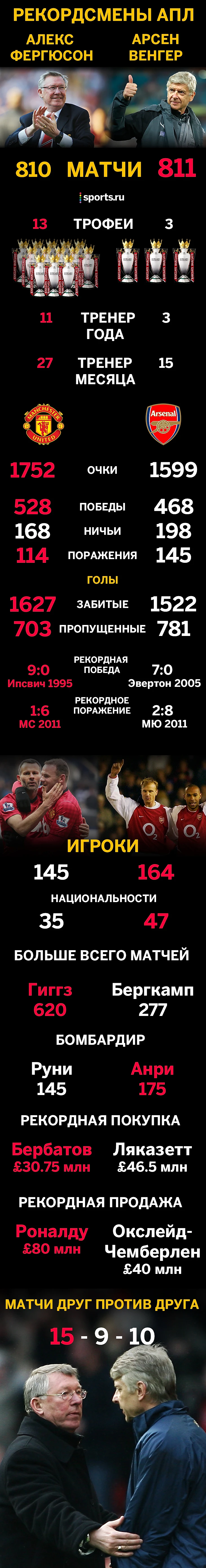 Венгер обошел Фергюсона. Но пока только по числу матчей
