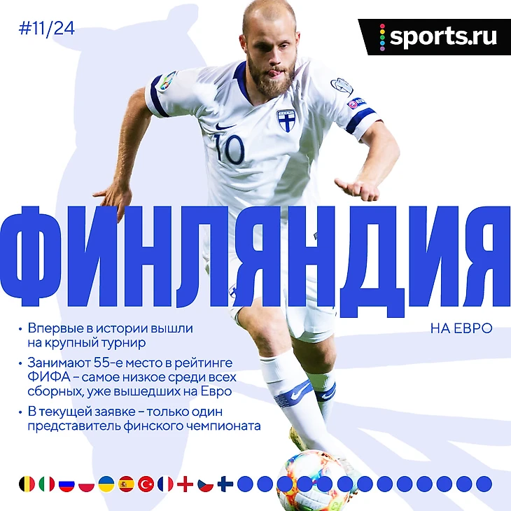 Сборная Финляндии впервые сыграет на топ-турнире. Она пропустила все самое прекрасное в истории футбола: 21 чемпионат мира и 15 чемпионатов Европы. Удивительно, но даже золотое поколение Литманена, Хююпя и Яаскелайнена пролетало во всех отборах.