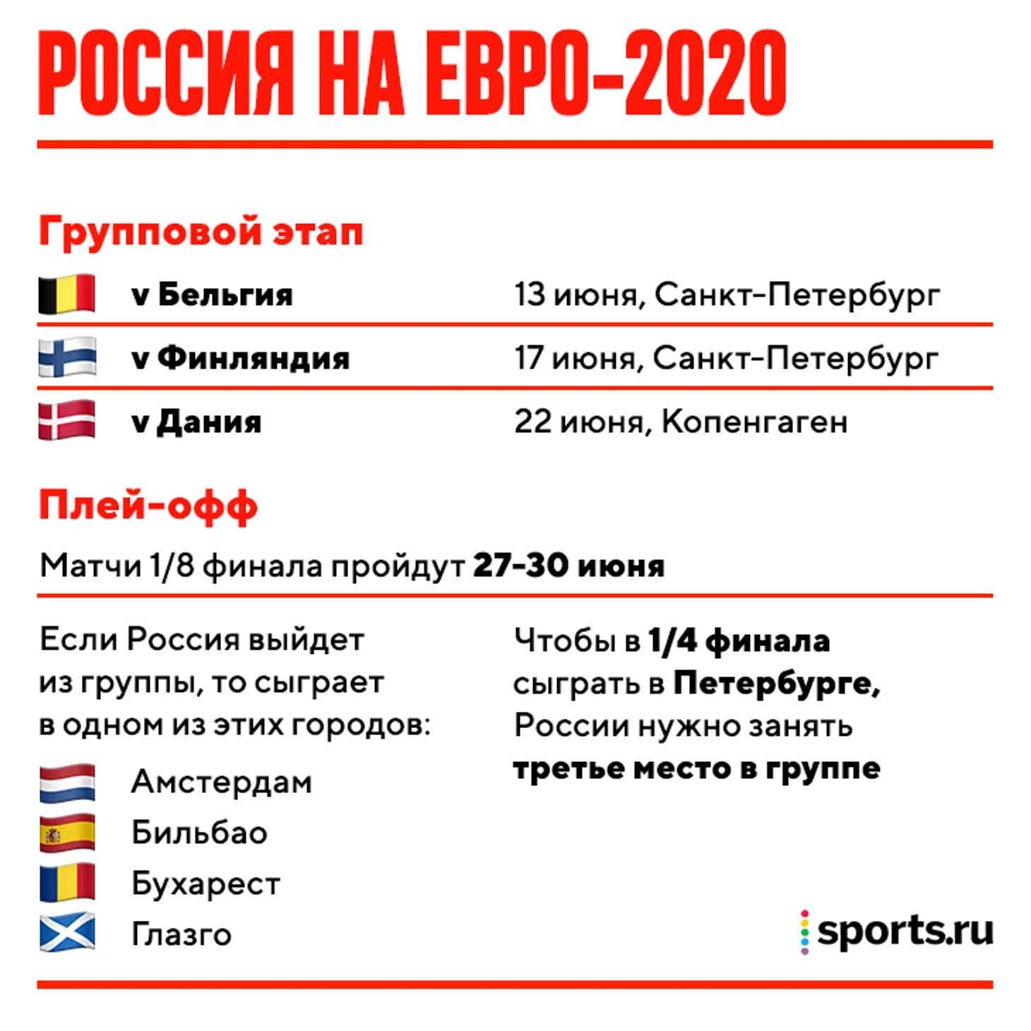• Сборная России проведет два стартовых матча в Петербурге, а с Данией сыграем в Копенгагене. Примечательно, что Дания все три игры группового этапа проведет дома.