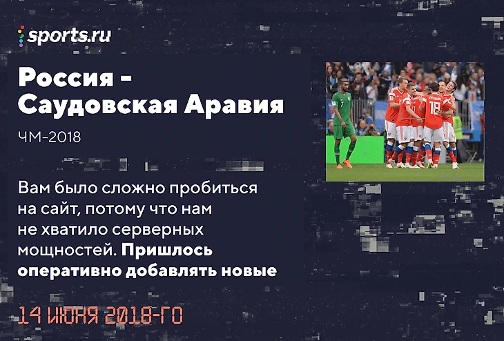 Три чемпионата мира, два Евро, домашняя Олимпиада, бан российского спорта, переход Криштиану в «Юве» – это были насыщенные 2010-е. С каждым турниром и событием Sports.ru принимал все больше и больше пользователей. Мы готовились, обновляли серверы, но не всегда выдерживали, а иногда делали глупые ошибки. В такие минуты вместо наших текстов, онлайнов и новостей вас встречал Андрей Аршавин.