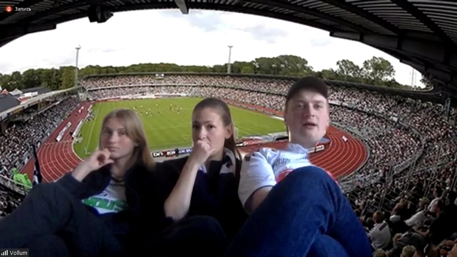Заказ виртуального билета максимально приблизили к покупке настоящего: все та же схема стадиона, стандартный выбор сектора – только вместо пластмассового кресла получаешь место в Zoom-конференции. Секторы – отдельные комнаты, в каждой могли поместиться до тысячи человек: были конференции фанатов «Орхуса», «Рандерса» и случайных и нейтральных иностранцев вроде нас. Виртуальную посещаемость в «Орхусе» пока не посчитали: болельщики забронировали десять тысяч билетов, воспользовались ими точно не все, но многие подключившиеся смотрели футбол всей семьей.