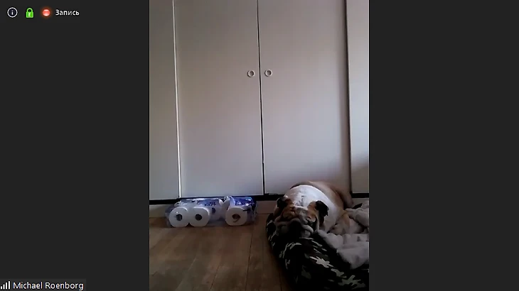 Некто Микаэль Роенборг в трансляции не появлялся: ноутбук стоял на полу, перед камерой – лежанка и отдыхающий на ней бульдог.