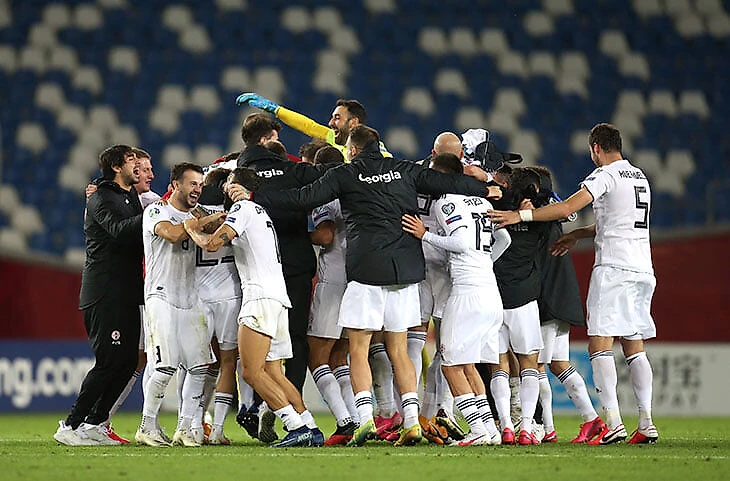 • Грузия вырвала победу у Беларуси и в шаге от первого в истории попадания на Евро. Единственный гол забил Окриашвили (но с пенальти, а не через себя). После выезда со стадиона грузин встретили как героев.