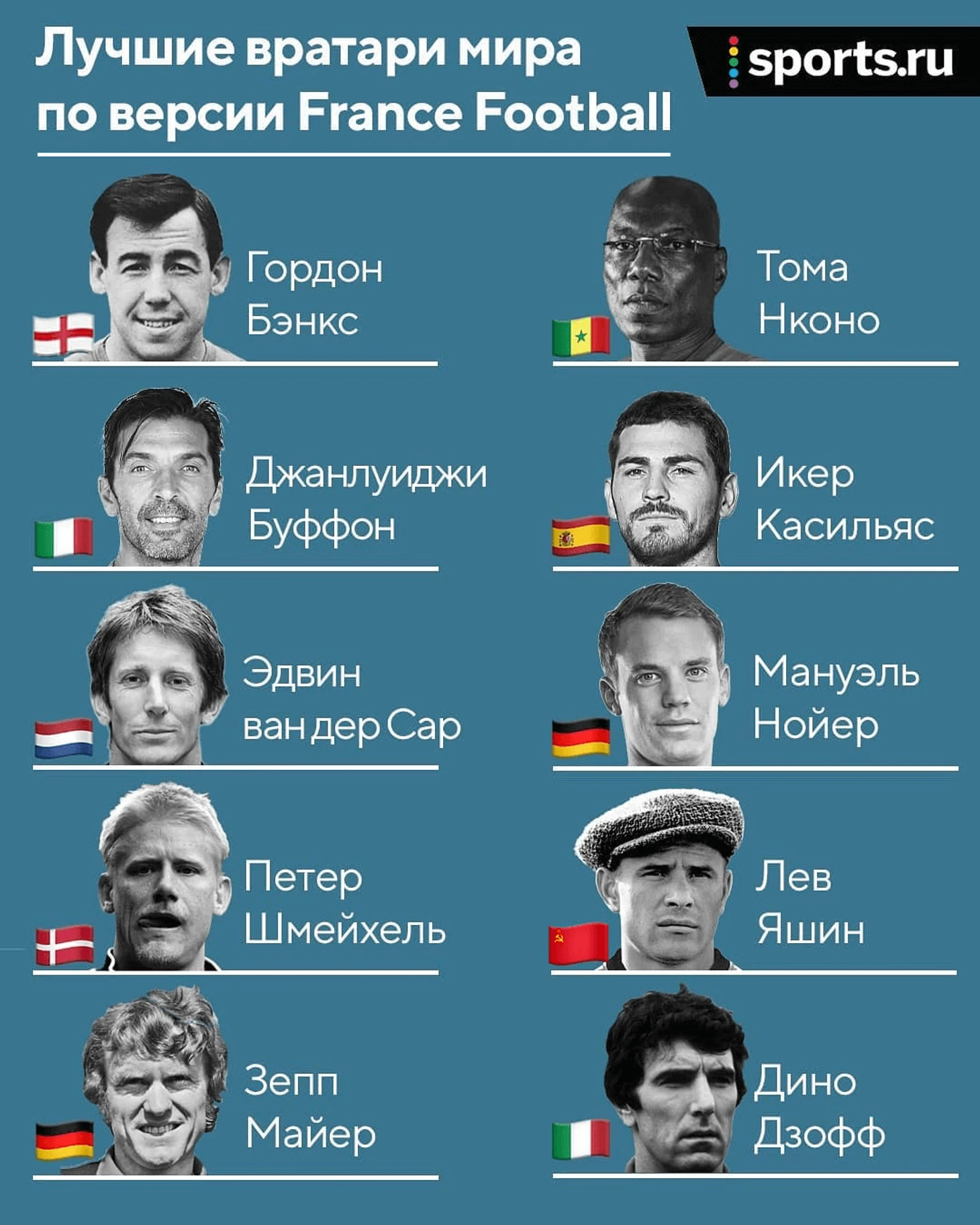 Чтобы сравнить оценки аудитории Sports.ru и остального мира, мы запускаем такое же голосование (с теми же кандидатами и по той же схеме). Начинаем с вратарей.