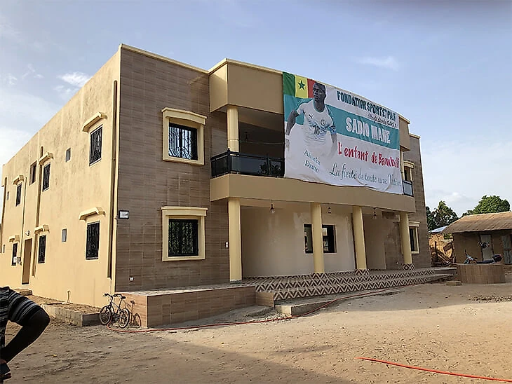 Дом Мане выделяется, как «Москва-Сити» над Кутузовским проспектом. Огромный двухэтажный дом с тонированными черными окнами – когда их увидел, у меня аж челюсть отпала. Гигантский бетонный забор. Как будто колонизаторы приехали захватывать страну, а это дом короля. При этом калитка и дверь дома открыты настежь. Хозяева не боятся, потому что никто не будет нападать на дом Мане – только если чувак, которого он в детстве на банку усадил.