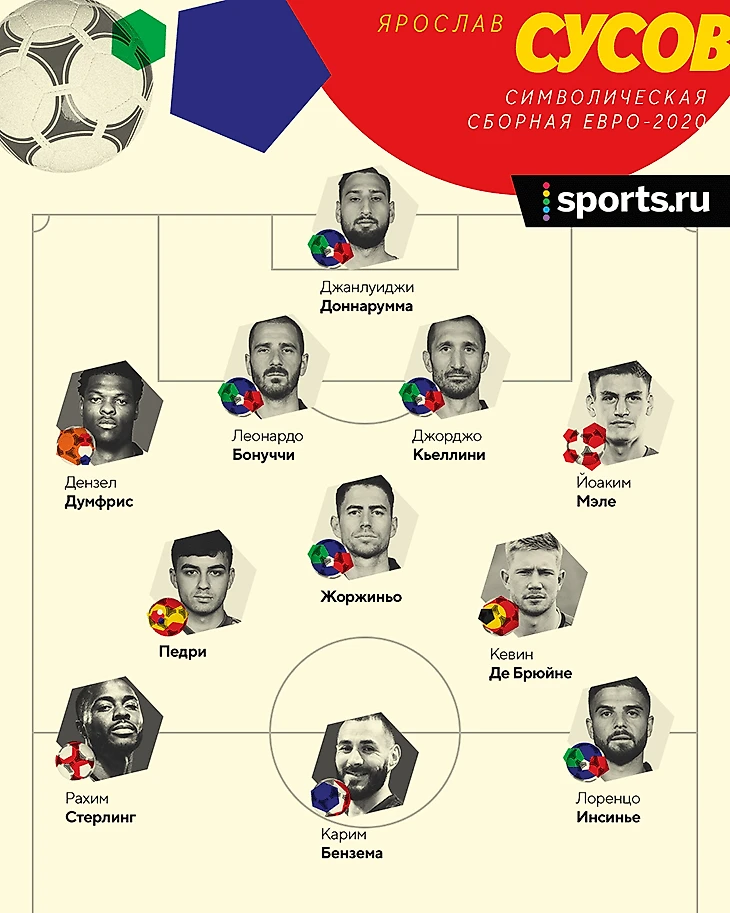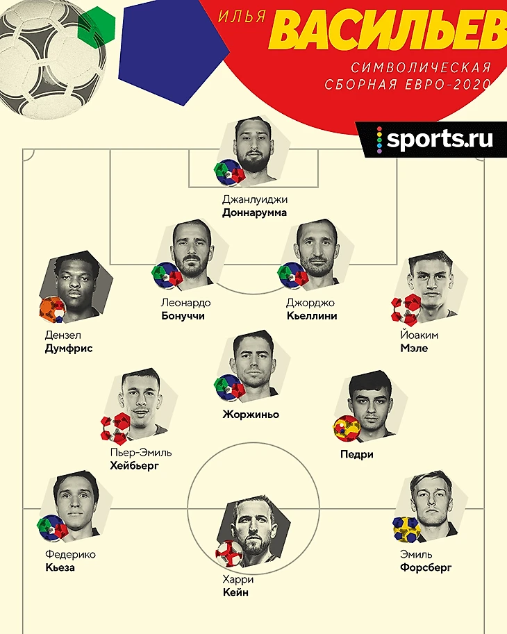 Кажется, в символической сборной Евро только три безальтернативные позиции: Кьеллини, Бонуччи и Жоржиньо. Первые двое зацементировали итальянскую оборону и вписали имена в историю. Англия не пропускала за счет общей организованности обороны, а остальные просто играли хуже. Жоржиньо же провел потрясный сезон и окажется в топ-10 в списке «Золотого мяча»
