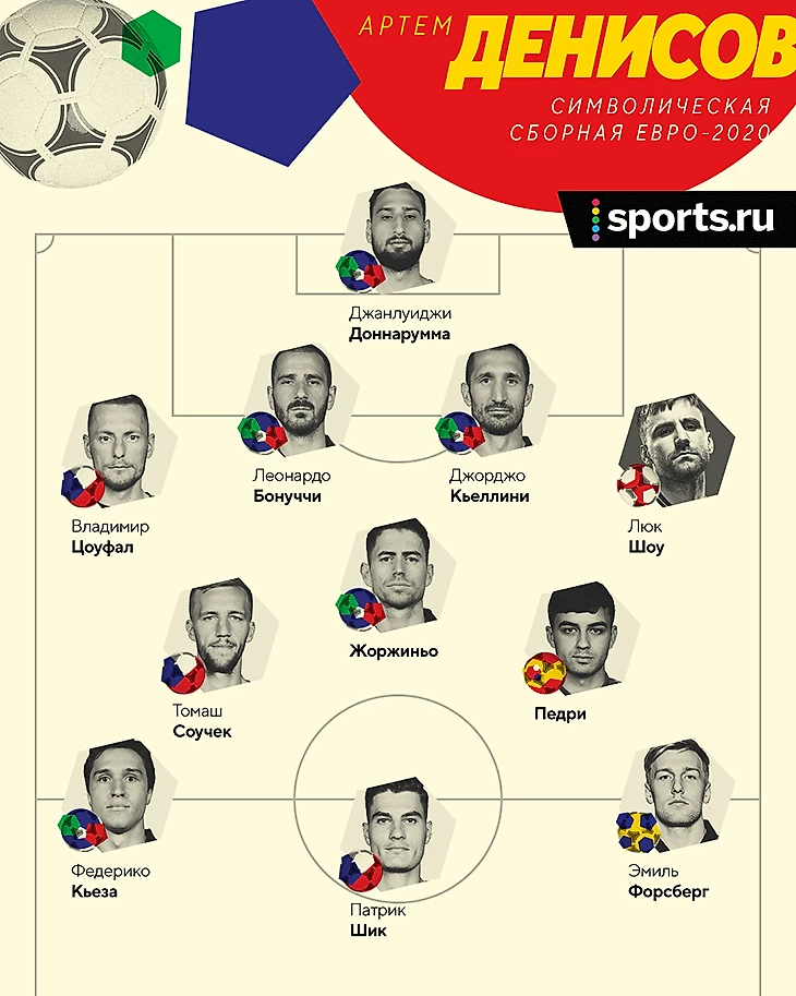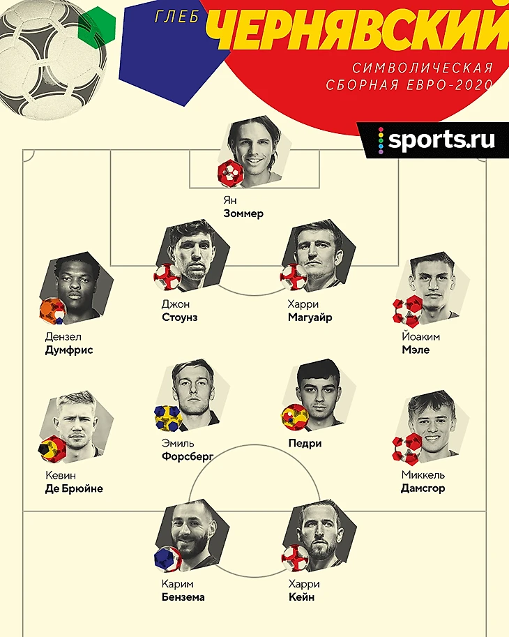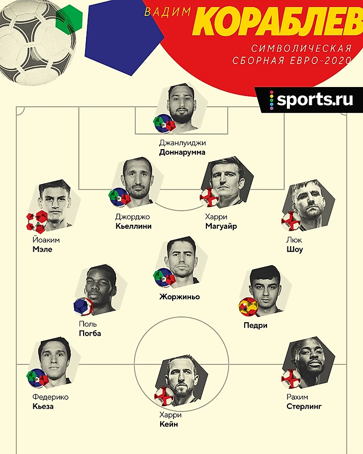 Форсберг рано вылетел, но сверкал в каждом матче: четыре гола – прекрасный итог. Шик идеально сыграл в роли настоящей девятки – еще и успевал помогать, выигрывая мячи для партнеров. Кьеза символизирует вечное движение новой Италии: помогал в защите, космически ускорялся и забивал важные мячи (Австрии и Испании).