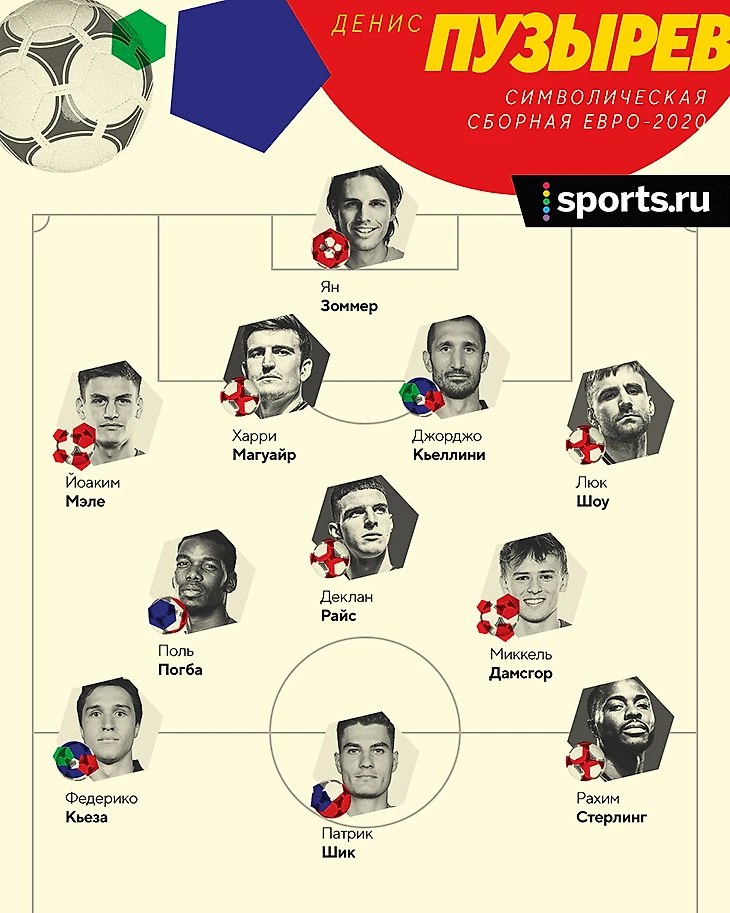В атаке кандидатуры Стерлинга и Кьезы кажутся очевидными – оба провели отличный турнир и забили важнейшие голы. Ну а центрфорвардом поставлю Патрика Шика. Да, чех не самый выдающийся форвард Европы, и не факт, что после успешного Евро он станет суперзвездой. Но пять забитых мячей – это серьезный показатель.