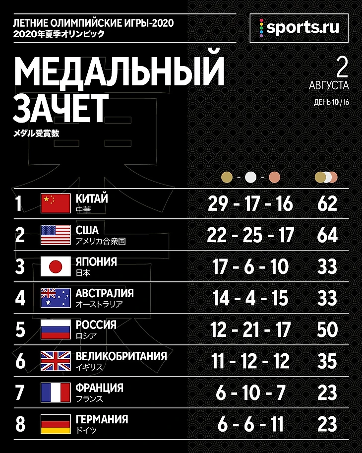 • В сумме у нас 50 медалей – больше только у Китая (62) и США (64).