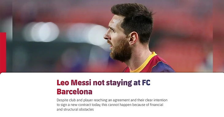 Да, вы правильно прочитали заголовок: Лионель Месси покидает «Барселону». Заявление об этом появилось на официальном сайте клуба.
