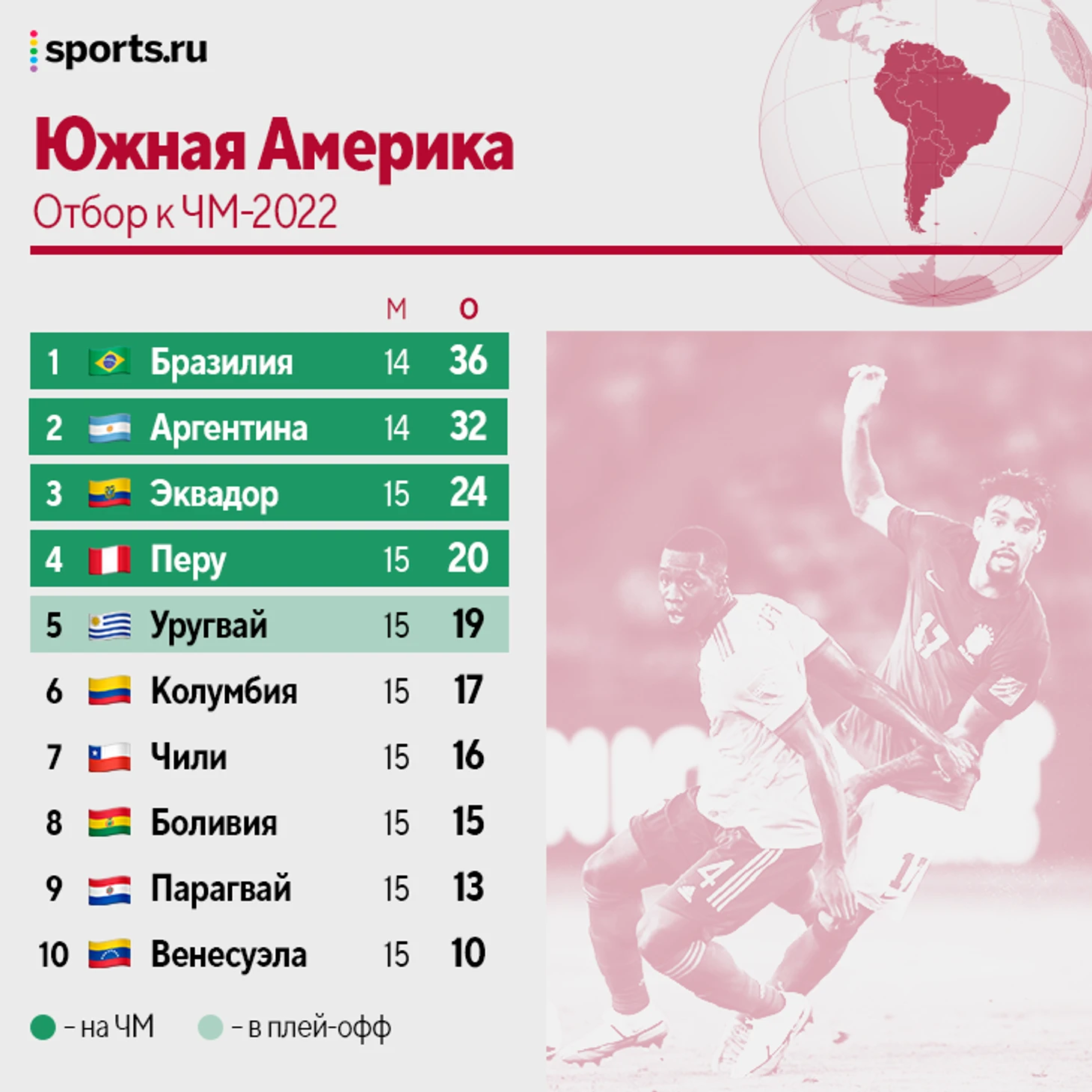 Сборные Бразилии и Аргентины уже гарантировали попадание в топ-4 и поездку в Катар. Туда отправятся еще две команды напрямую и одна (возможно) через межконтинентальные стыки.