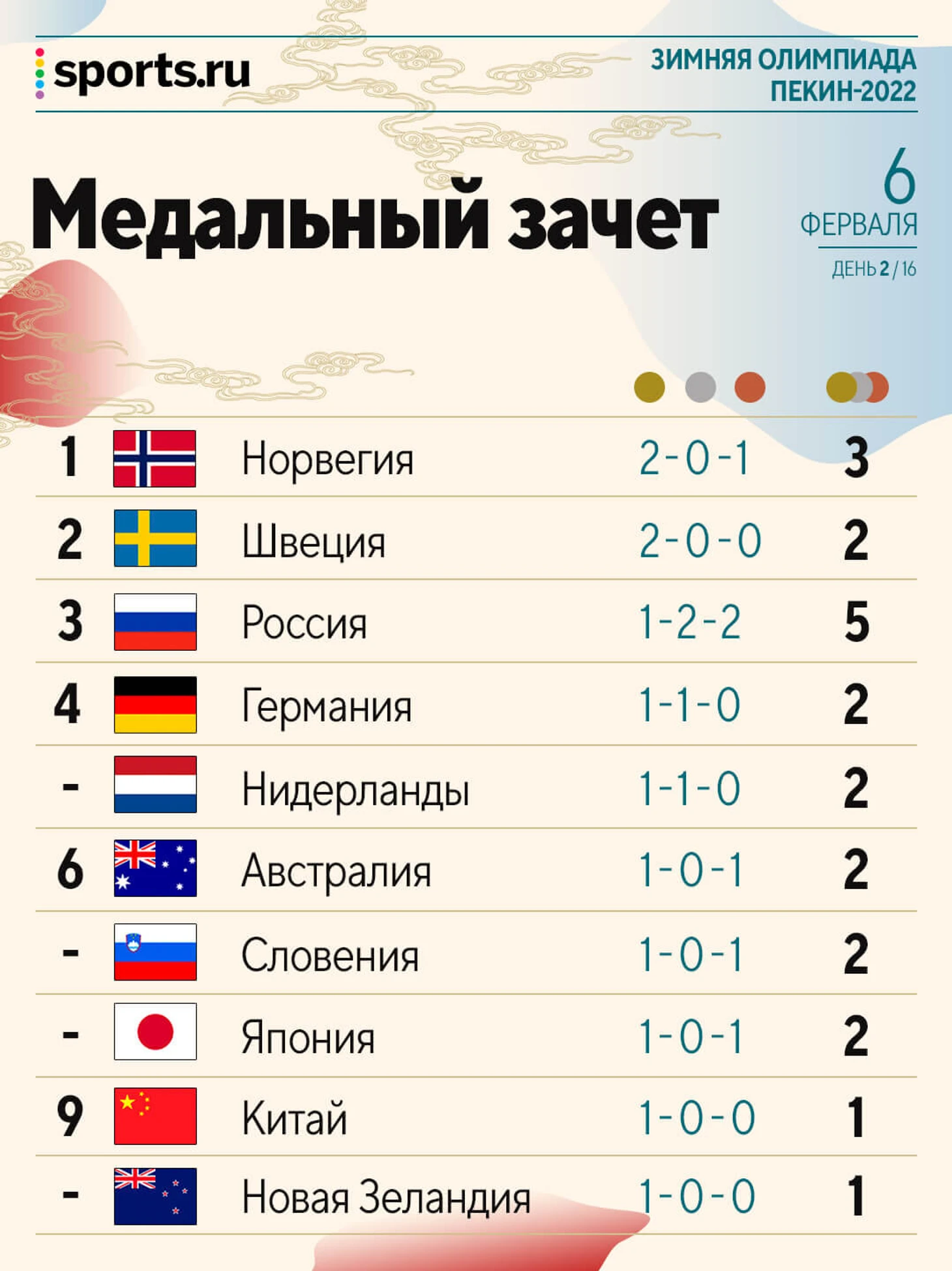 Закончился второй день Олимпийских игр-2022. Изучаем медальный зачет.