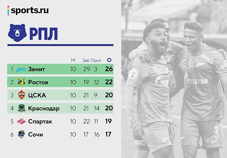• Главный преследователь – внезапно «Ростов». У Валерия Карпина сейчас в работе сборная, но клуб на перерыв он оставил в полном порядке: связка Даниила Уткина с Николаем Комличенко работает шикарно, Дмитрий Полоз добавляет с игры и с пенальти, Данил Глебов ведет в центре поля – ростовчане сколотили яркую банду. Которой сразу после паузы ехать в Петербург.