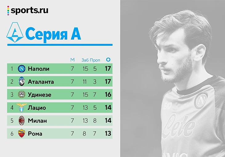 • «Наполи» и «Аталанта» в этом сезоне не проиграли ни одного матча – обе команды накопили пять побед при двух ничьих и лидерство в турнирной таблице.