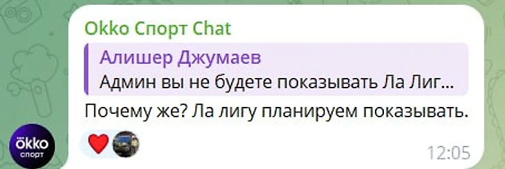 «В рамках идущих в настоящее время судебных процессов с АО «Телеспорт» и Петром Макаренко Okko еще 8 июля вернул права на оставшиеся предстоящие два сезона Ла Лиги АО «Телеспорт» для последующей монетизации. В соответствии с заключенным договором АО «Телеспорт» до 20 июля обязался реализовать данные права. Поэтому мы не можем прокомментировать приобретение прав на Ла Лигу каналом «Матч ТВ»