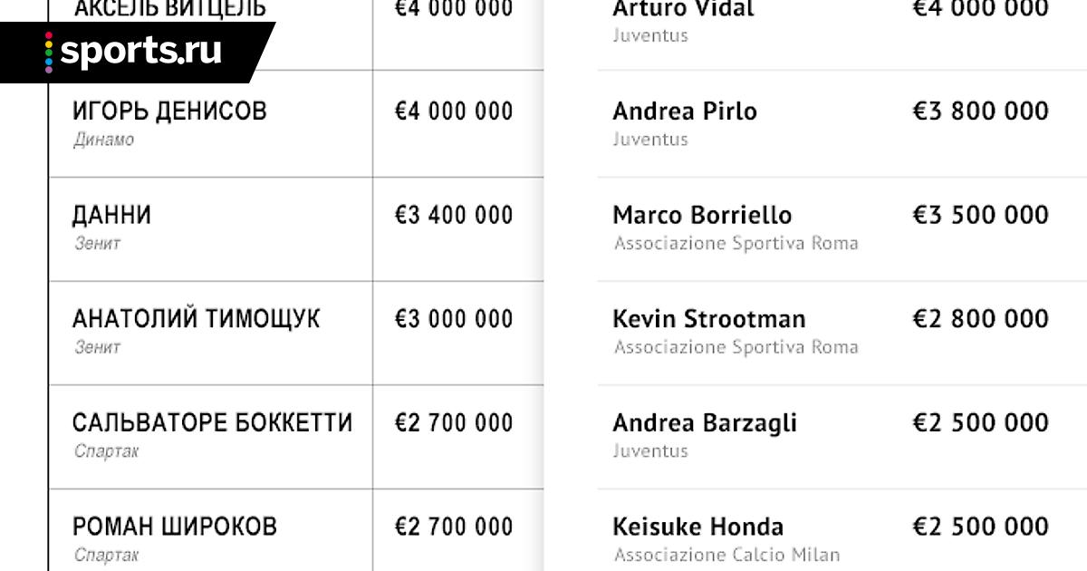 Зарплатные данные премьер-лиги – Sports.ru, cерии А – Gazzetta dello Sport.