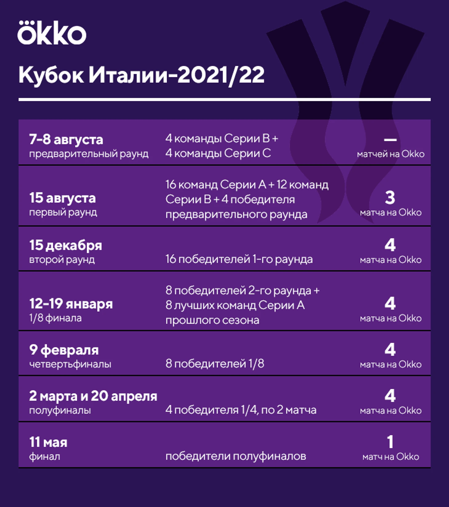 «Пока нет возможности показать Серию А, но Кубок – тоже интересный вариант, – рассказывает Стогниенко. – Ну а если есть права на турнир, то и предлагать нужно максимально возможный объем. Это же главное преимущество стриминговых сервисов – неограниченное количество трансляций и другого интересного материала».