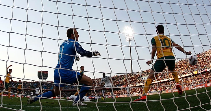 Австралия вновь пробилась в финальную часть Чемпионата Мира в 2010. В матче против сборной Ганы Кьюэлл сыграл рукой на линии своих ворот...