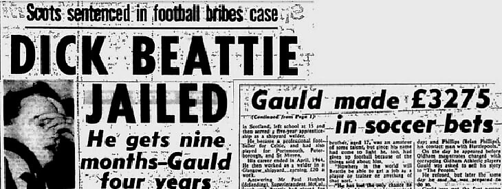 В 1963-м Джимми Голд и его синдикат (в нем были уже шесть действующих футболистов) попытались повлиять на исход матча «Брэдфорд Парк Авеню» – «Бристоль Роверс»: сыграли 2:2 благодаря двум футболистам «Бристоля» – вратаря Эсмонда Миллиона и инсайда Кейта Уильямса. Предложения о сдаче им делал футболист «Мансфилда» Брайан Филлипс. Всех троих потом оштрафовали и пожизненно отстранили от футбола. 4 августа того же года газета The Sunday People выпустила сенсационное интервью футболиста «Хартлпул Юнайтед» Кена Томпсона: он признался, что делал ставку на поражение своей команды в матче с «Эксетер Сити» после переговоров с бандой Джимми Голда. Через неделю газета выпустила собственное расследование, в котором называла Голда организатором серии договорных матчей.