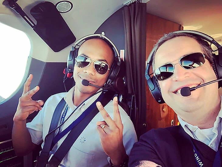 Я стал командиром судна раньше жены, она еще какое-то время была вторым пилотом, поэтому мы иногда летали вместе. Мне очень нравится летать с Лизой, потому что она очень хороший пилот, плюс мы друг друга понимаем с полуслова, по-русски можно поговорить. С женой работать в два раза легче.