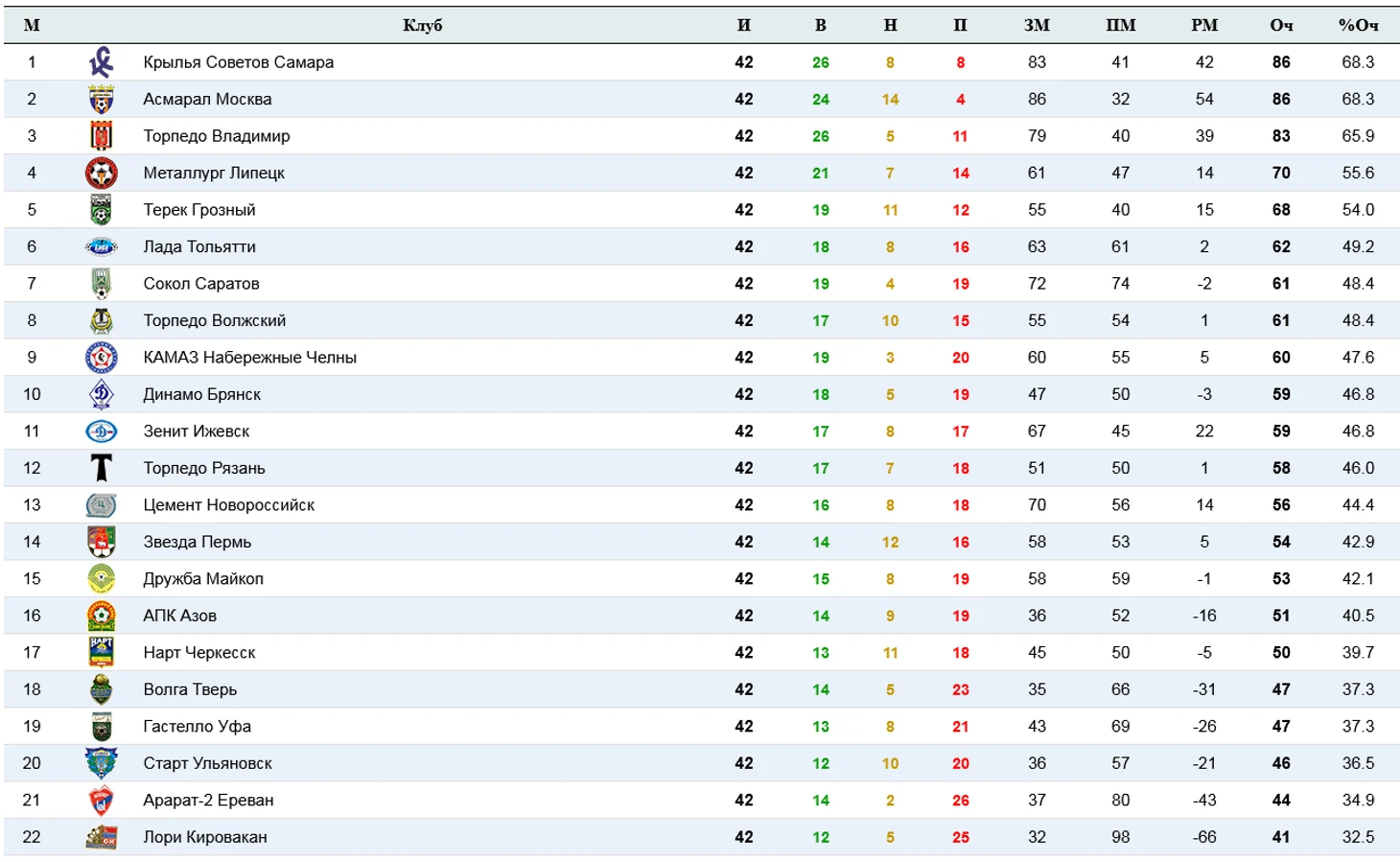 В итоге "Торпедо" заняло третье место, а "Асмарал" и "Крылья Советов" в 1992 году дебютировали в высшей лиге российского чемпионата.
