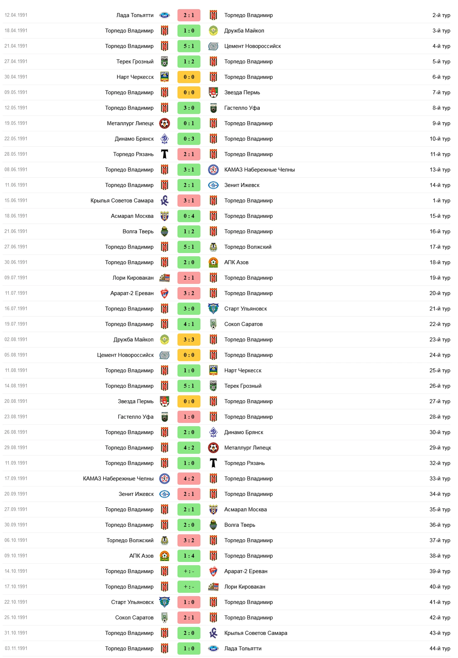 Именно 1991 год болельщики во Владимире считают одним из самых крутых в истории "Торпедо". Третье место владимирцев для многих из них имеет даже большее значение, чем шестая строка турнирной таблицы двумя годами позже в зоне "Запад" первой лиги первенства России.