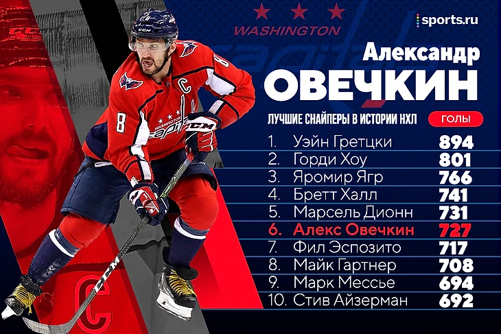 У Овечкина – 21 гол в 37 матчах. До лидера гонки снайперов – Остона Мэттьюса – 7 шайб и 15 матчей до конца регулярки. До Марселя Дионна и топ-5 в историческом списке снайперов – 4 гола, до титула лучший игрок в истории НХЛ в большинстве – 8 реализаций численного преимущества.