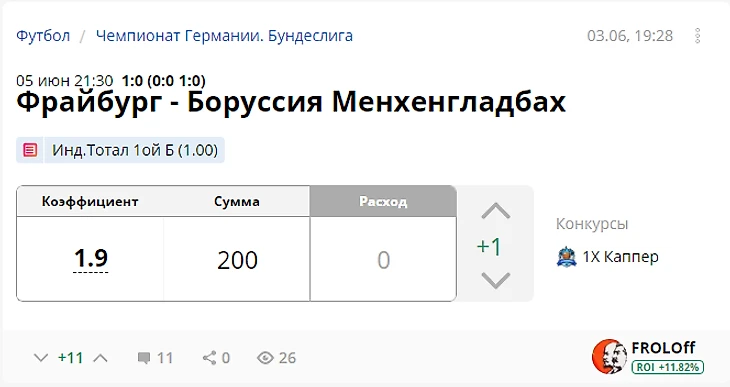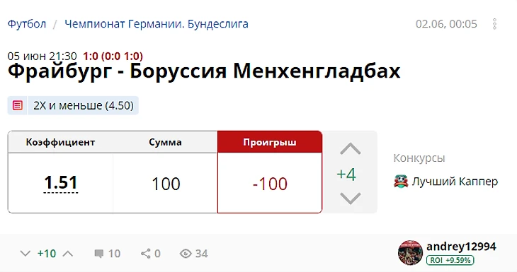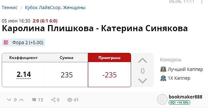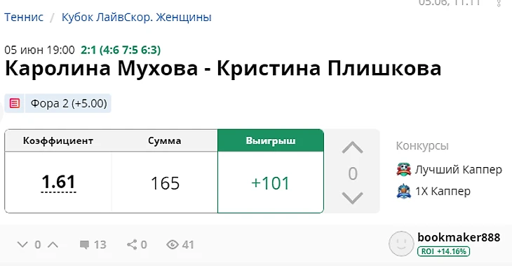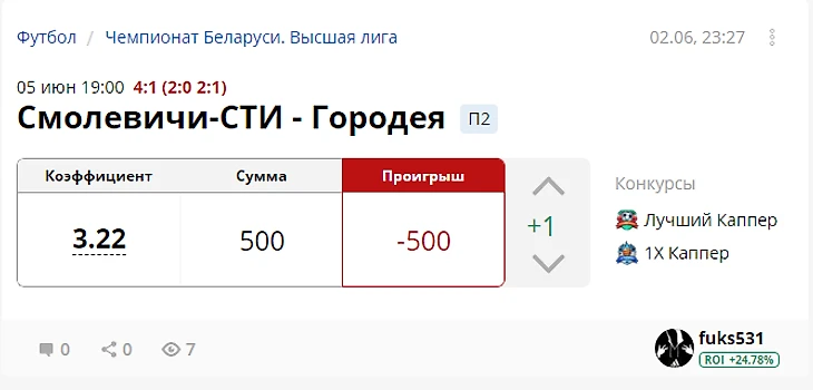 - Результат с учетом ставок капперов: -75 рублей (ROI -6,25)