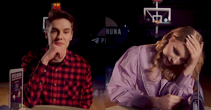 «Руна» садится за стол, девушка поднимает глаза и сразу влюбляется. Артёму даже делать ничего не пришлось: просто сесть и улыбнуться. Если обратить внимание на счётчики в момент свидания, то цифры на кубах не меняются — время замерло. Всё, как в жизни.