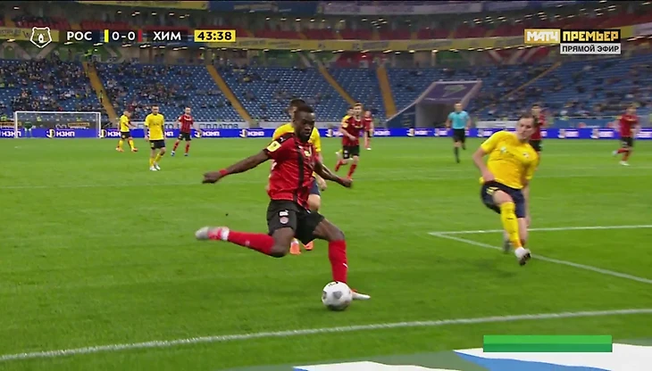 Вернёмся к самой игре. На 44 минуте как раз можно увидеть, как Глушаков и Конате создавали моменты. Денис мягко отправил мяч верхом в штрафную площадь, Мохамед смог ворваться, обработать мяч и извлечь максимальную выгоду из эпизода - заработать угловой.