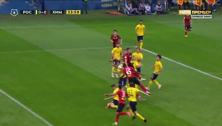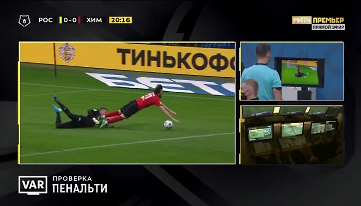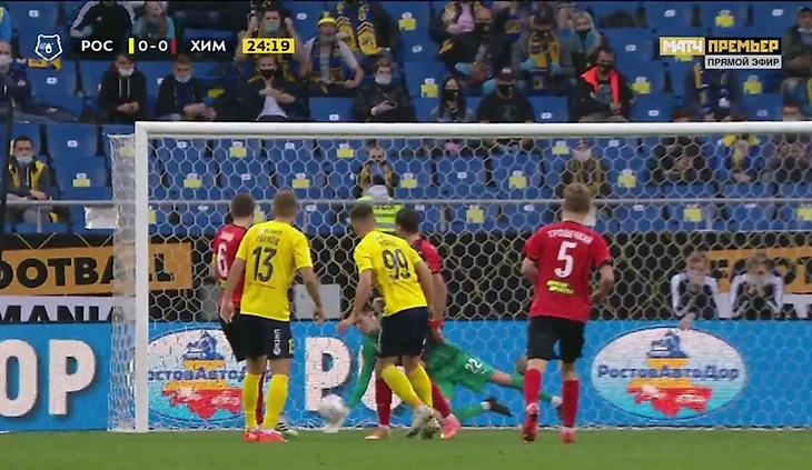 Но до перерыва было еще очень много моментов. На 21 минуте Василий Казарцев назначил пенальти в ворота Ростова, но после трёхминутного просмотра VAR решение было отменено. Эпизод вышел спорным - Песьяков действительно опасно выходил навстречу Мирзову, но он не пошёл в контакт, когда Ризван опрокинул мяч перед падением. Выступающий на правах аренды игрок Спартака скорее очень сильно хотел упасть и я согласен с тем, что Казарцев отменил своё решение. Мирзов же получил жёлтую карточку за симуляцию.