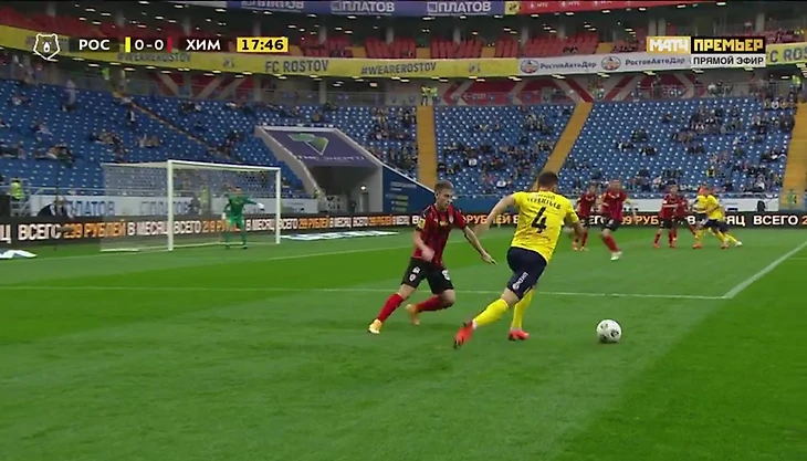 Хочу отметить взаимодействие игроков друг с другом. Полоз и Ерёменко сегодня часто менялись позициями и иногда это обостряло игру, однако к результату не приводило. Как только Роман касался мяча, дальнейшее действие было легко прочитать - высокая подача, мяч у Химок. Полоз при смене вообще терялся. Моментов у него особых не было после таких тактических перестановок.