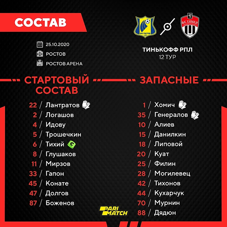 Ростов на этой неделе смог неплохо отдохнуть после победы над Ахматом (вылет от Маккаби приносит свои плоды), а Химки, как было сказано раннее, сыграли сложный матч в Нижнем Новгороде с одноимённой командой, который мало того продлился 120 минут, так ещё казалось, что серия пенальти будет бесконечной. Проще говоря, состояние хозяев должно было быть сегодня куда лучше, чем у гостей.