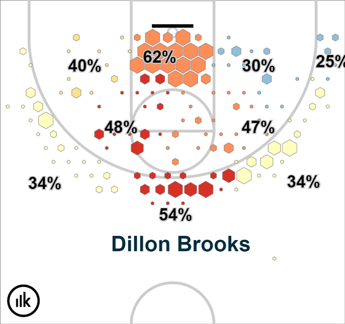 Помимо того, Брукс любит бросать дальние двухочковые - самый малоэффективный бросок в сегодняшней НБА: у Брукса 17 процентов бросков - с дистанции в 10-16 футов. Однако когда он в огне - этого парня не остановить, а кроме того, он обладает недюжинной смелостью и готов встать на пути у любого соперника.