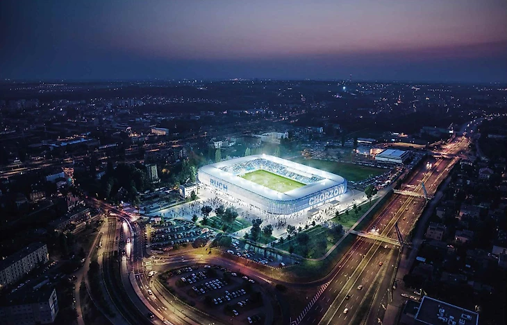 Второй по величине город Южной Польши (после Кракова) давно нуждался в новом стадионе. Арена местного «ГКСа» уже устарела, да и амбиции команды вынудили местные власти принять решение о строительстве нового дома для «гексы». Как и в случае с Радомом, в Катовицах стадион будет совмещен с дворцом спорта для игр в помещении. Вместимость дворца спорта составит около 3 тысяч человек. Рядом будут находится еще и несколько тренировочных полей. Особенностью проекта являются колонны в цветах местного клуба. Стадион будет иметь еще и возможность для расширения за счет дополнительных рядов, что сможет повысить вместимость новой арены в Катовицах до 14656 человек.