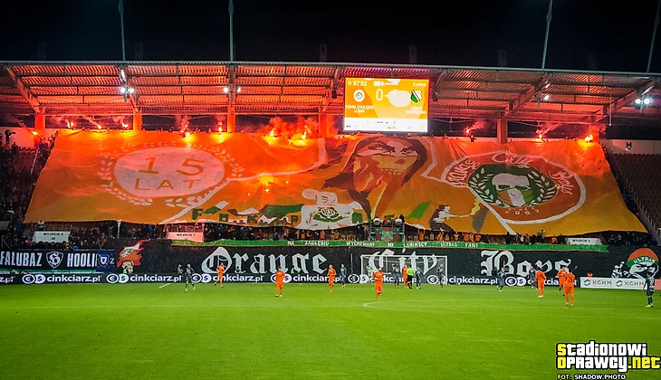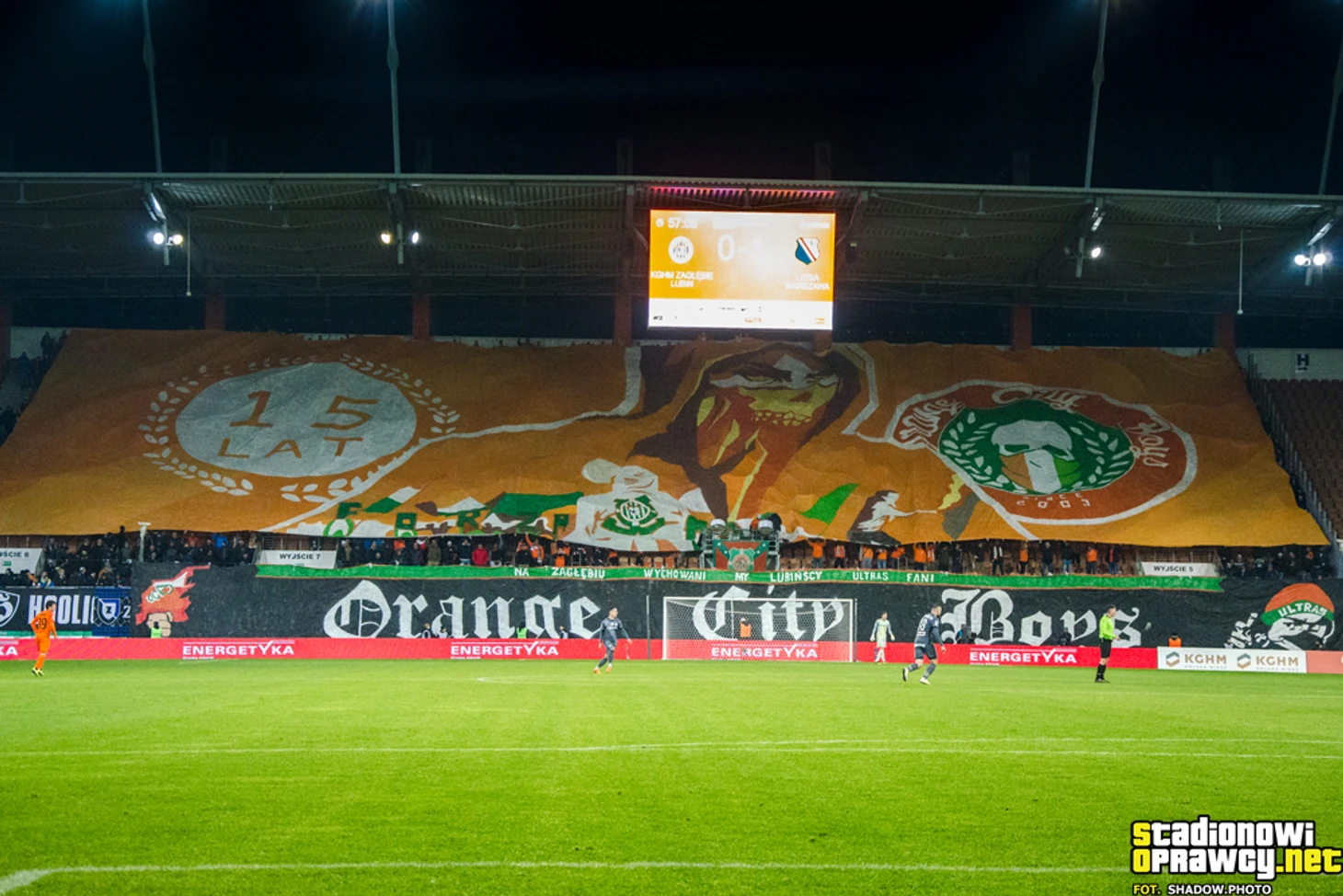 Фанаты «Заглембе» из Любина отмечали на матче с «Легией» 15-летие своей ультрас группы «Orange city boys».