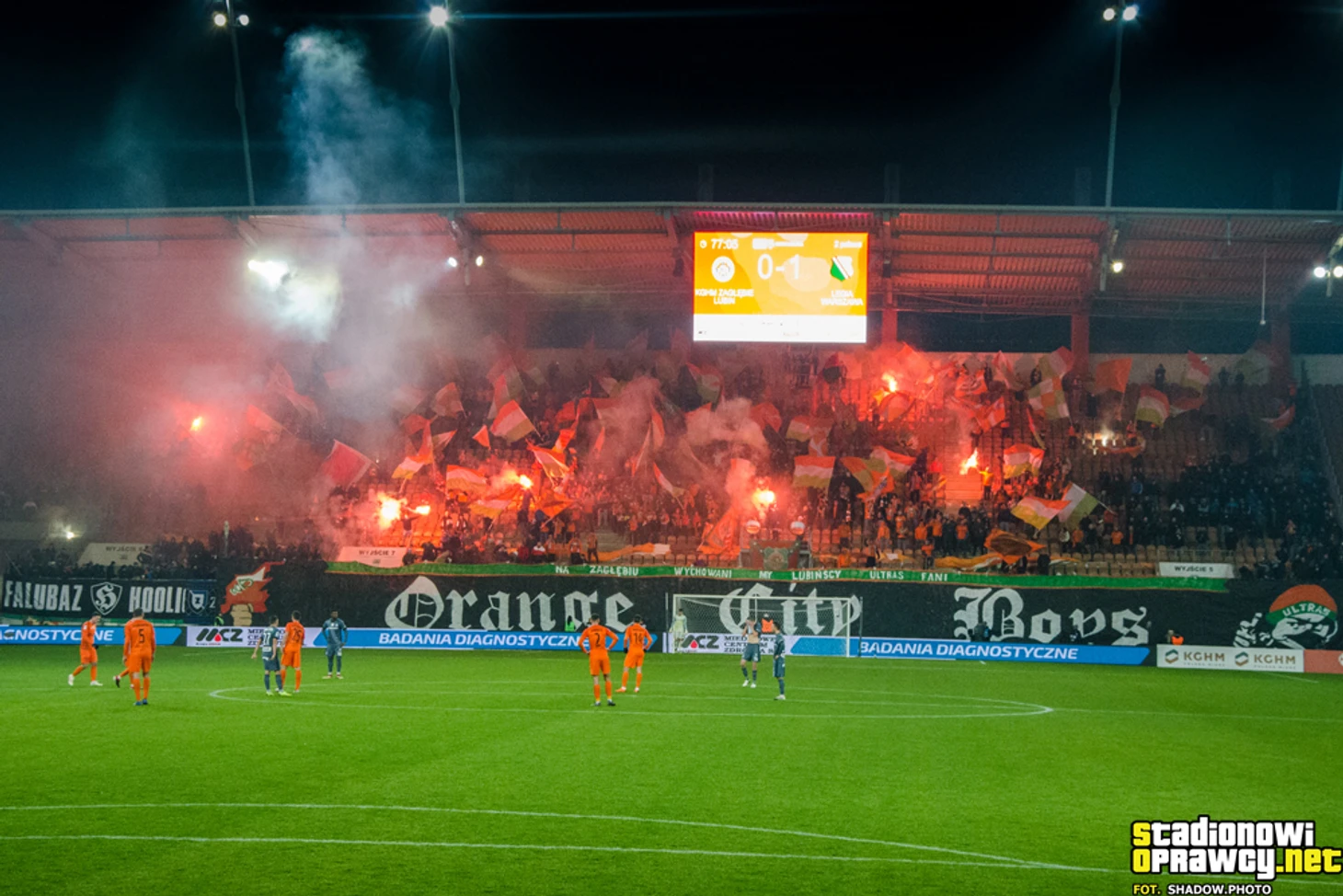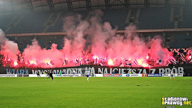 В последний день осени матчем во Вроцлаве начался 17-ый тур Экстракласы. Фанаты «Слёнска» и «Лехии» расположились на одном секторе и пожгли немного пиротехники.
