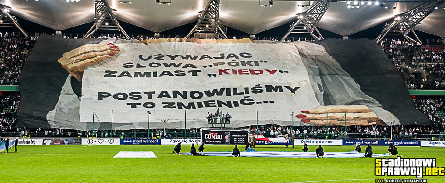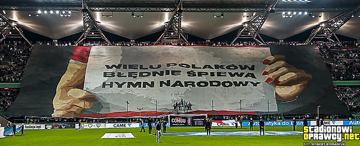 Заглянем и в Экстракласу. Тут фанаты «Легии» решили затронуть проблему неправильного исполнения гимна страны.