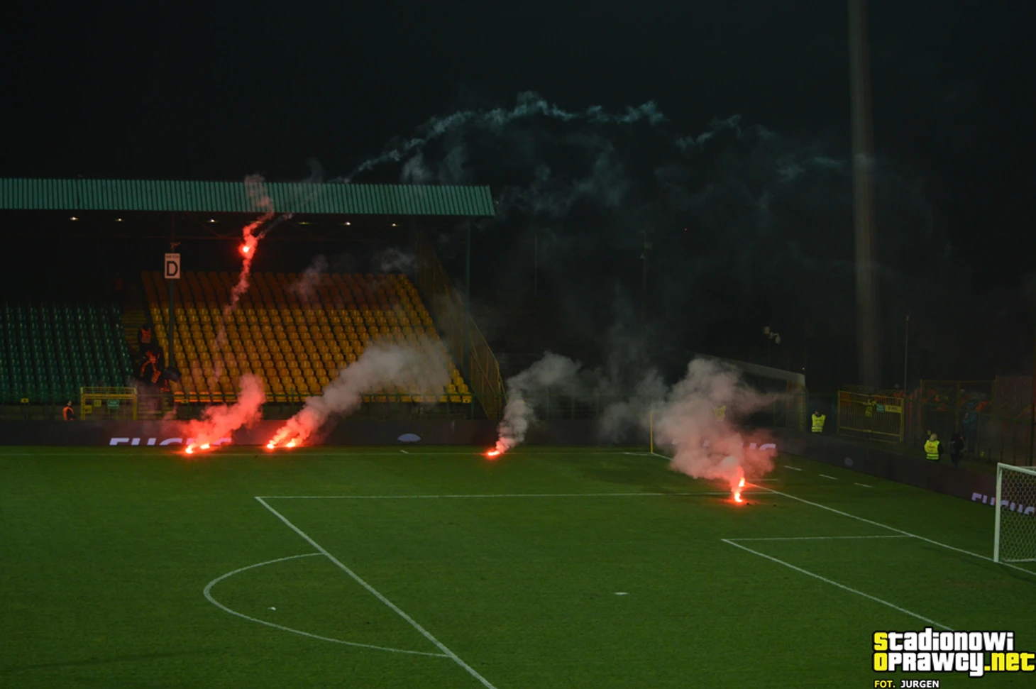 28 ноября в Катовице приехал один из лидеров І лиги «ЛКС» из Лодзи. Пиротехника гостей, которая полетела и на газон.