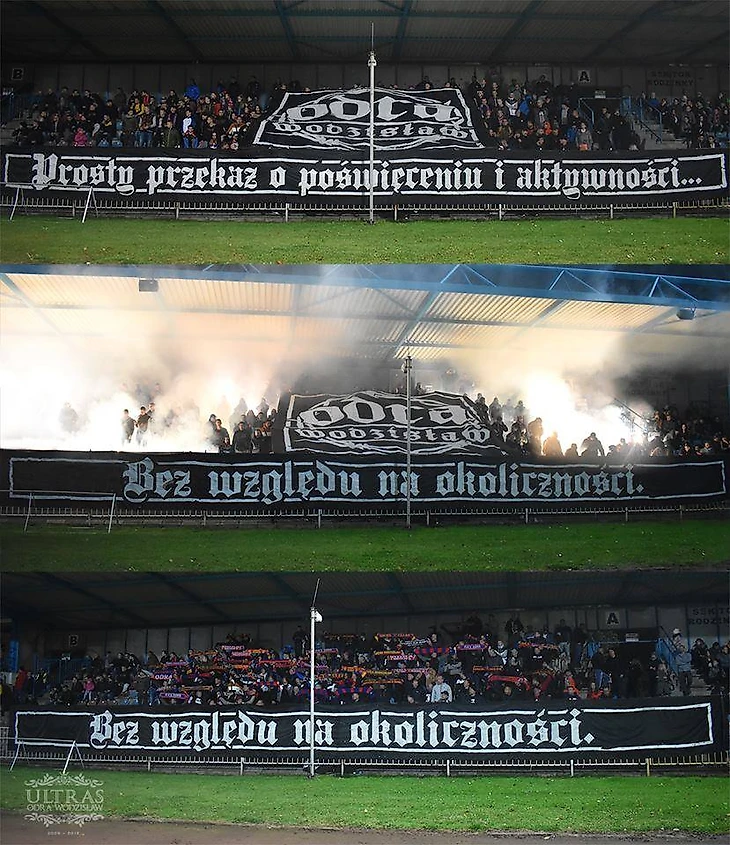 Третий раз за этот пост отправляемся в Водзислав к фанатам «Одры». «С настойчивостью вперед под особым надзором».