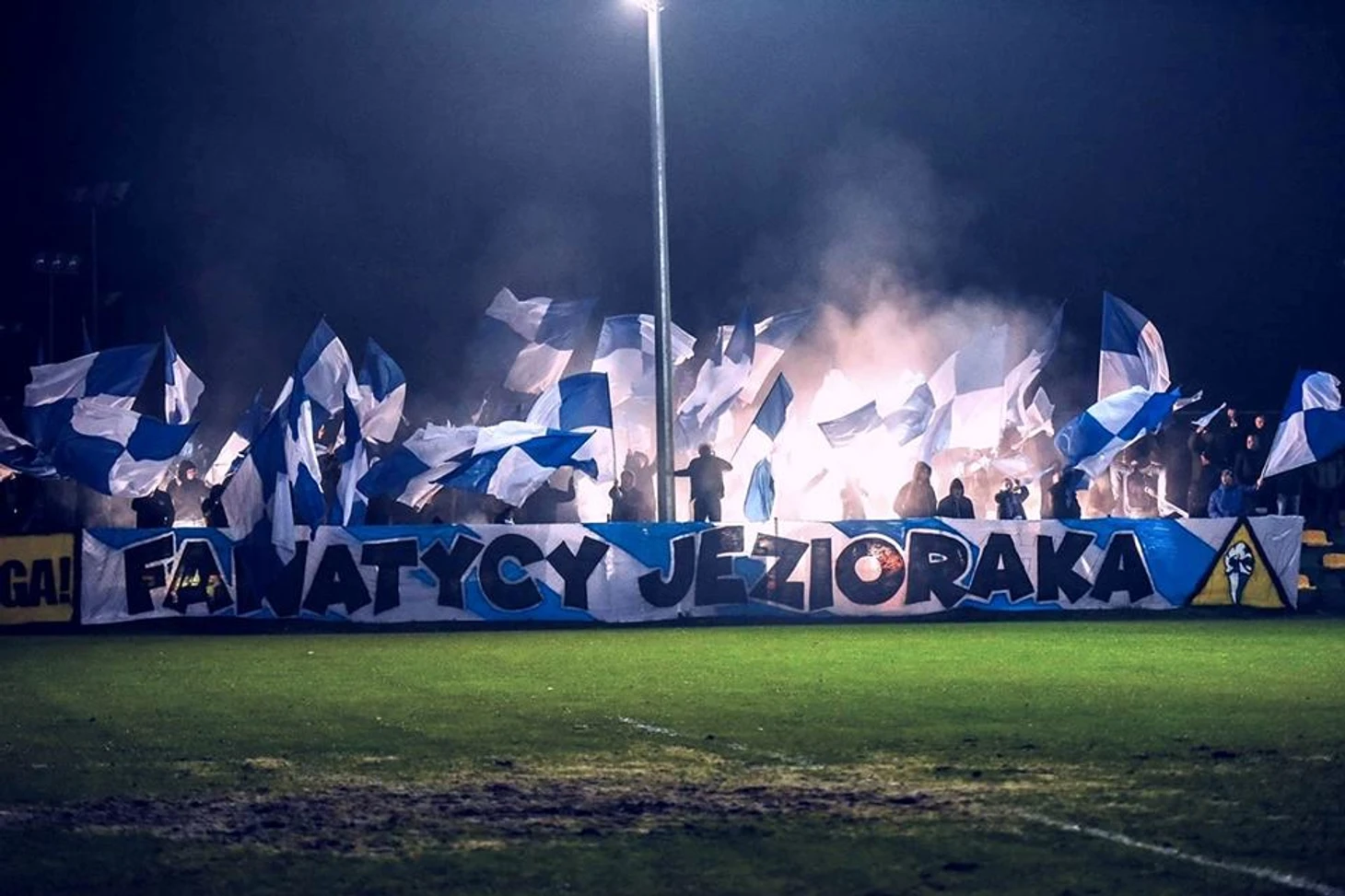 Продолжаем изучать польскую географию путем путешествий по четвертым лигам страны. Фанаты «Езёрака» приехали на выезд в Викелец в количестве около ста человек и подготовили оправу «Осторожно! Фанаты «Езёрка» с использованием специального баннера, флагов и пиротехники.