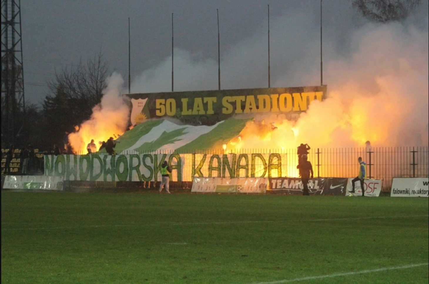 Матч ІІІ лиги «Свит» Новы Двор против варшавской «Полонии». Хозяева развернули секторувку в виде канадского флага, вывесили баннер «Новодворская Канада» и, естественно, немного пожгли.