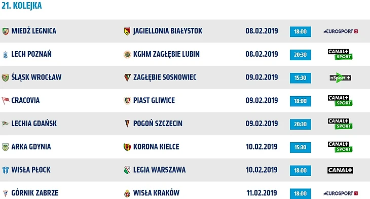Фото: ekstraklasa.org, pogonszczecin.pl, zaglebie.eu, piast-gliwice.eu, arka.gdynia.pl, wisla.krakow.pl, korona-kielce.pl, zaglebie.com, stadionowioprawcy.net.