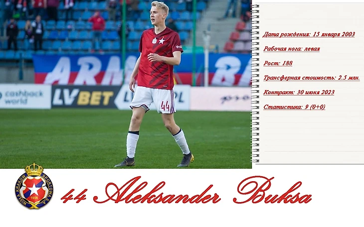 Александр Букса - брат Адама Буксы, который недавно уехал из «Погони» на американские легионерские хлеба. Александр считается одним из главных талантов краковчан. За основную команду «белой звезды» форвард дебютировал в возрасте 16 лет 3 месяцев и 7 дней. На руку Буксе сыграли финансовые проблемы «Вислы», которые чуть было не довели клуб к низшим лигам, благодаря чему Букса стал получать больше игрового времени. По итогу в сезоне 2018/2019 Александр сыграл четыре встречи, в среднем проводя на поле восемь минут.